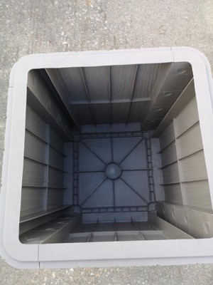 - • SIZED TO STORE PATIO OR GARAGE ITEMS: The small deck box measures 15.25" square x 16.5" H, weighs 6 lbs, and has a 110 lb weight capacity. Interior storage space is 13.5" square on the bottom, 15.25" square on the top and is 16" H. Use as both a storage box as well as a side table.