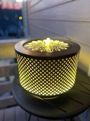 [This review was collected as part of a promotion.] The Sunnydaze Repeating Diamond Cylinder Iron Outdoor Water Fountain is truly captivating and charming in its compact size. It seamlessly complements our family's gathering spot, enhancing its appeal. My children delight in frolicking around the fountain, which fosters joyous water play. Its exquisite cylindrical design exudes elegance and craftsmanship. I especially appreciate its lantern light, which casts enchanting patterns. Assembling it was a breeze, and switching on the electric light was a delightful moment, providing just the right amount of illumination for our cozy space. This fountain has been an unexpected treasure, adding serenity to our environment. It's a delightful surprise that has enriched our relaxation area. I extend my gratitude to Influenster for introducing me to this wonderful product. We simply love it!