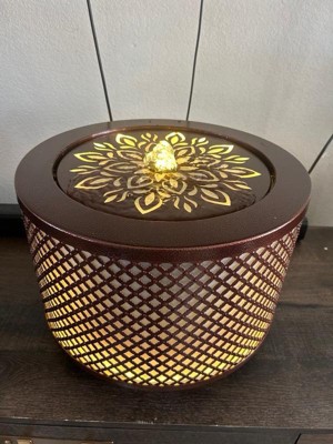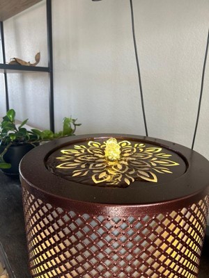 Sunnydaze Repeating Diamond Cylinder Iron Water Fountain with LED Lights - 11.75"
