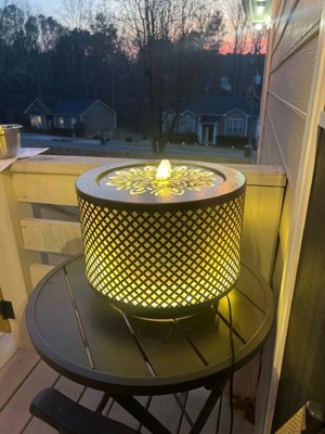 Meticulously crafted with a keen eye for detail, this delightful electric bubbling indoor/outdoor cylinder-shaped metal water fountain boasts a robust iron construction, thoughtfully adorned with a sleek powder-coated finish. This combination of sturdiness and style ensures that the garden fountain not only stands the test of time but also graces any space with an air of contemporary sophistication. The artistic charm of geometric cutouts adds a touch of uniqueness to this fountain's design, while the gentle radiance of LED lights bathes it in a soft, welcoming glow, making it a captivating focal point, whether it's the bright light of day or the tranquil darkness of night. The adjustable-flow-rate pump, granting the power to tailor the water's pace to any preference, ensuring that it's not just a source of aesthetic pleasure but a soothing retreat. Whether placed indoors to elevate the living area or outdoors to enhance a garden oasis, this fountain effortlessly harmonizes with any environment, introducing tranquility and a hint of refinement to any surroundings.