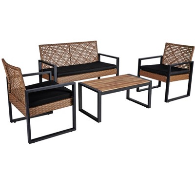 • VERSATILE OUTDOOR LOUNGE SOLUTION: Great for families, outdoor hosts, and design-conscious decorators, this 4-piece acacia and wicker patio furniture set provides stylish, durable seating for casual gatherings. Often paired with patio umbrellas, accent tables, or outdoor rugs, it appeals to those seeking weather-resistant furniture with modern rustic charm. Whether setting the scene for evening cocktails or afternoon chats, this set creates a welcoming, comfortable atmosphere.