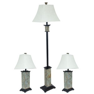 Sunnydaze Timeless Abode Slate 3-Piece Floor and Table Lamp Set