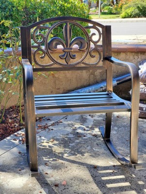 Sunnydaze Traditional Fleur-de-Lis Design Cast Iron and Steel Outdoor Rocking Chair