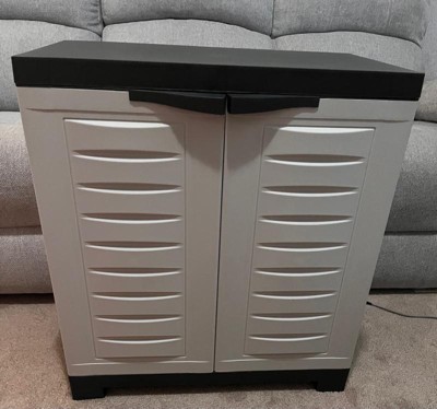 • VERSATILE STORAGE SOLUTION: Use the plastic storage cabinet with doors and shelves to contain tools, extension cords, and more in the garage, or place it in a storage room or office to keep office supplies or cleaning supplies organized.