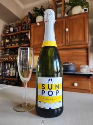 - SunPop Bubbly Brut sparkling wine is best served chilled