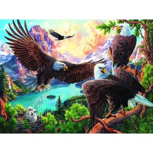 Introducing "Eagle Dance," a mesmerizing 1000-piece jigsaw puzzle by SunsOut Puzzles. Masterfully created by acclaimed artist Image World, this artistic masterpiece whisks you away to a serene wilderness setting where majestic eagles glide gracefully through the sky. Measuring 20" x 27" upon completion, this puzzle is a perfect pastime for puzzle enthusiasts and nature lovers alike. The superior craftsmanship of "Eagle Dance" is evident in each individually designed piece that interlocks seamlessly, providing you with an easy assembly process. Staying true to its commitment to quality, SunsOut guarantees this puzzle, made with premium recycled cardboard in the USA, is durable and user-friendly, promising hours upon hours of enjoyment without the concern of losing or damaging pieces. Not just visually stunning, SunsOut's puzzles are also eco-friendly, crafted using sustainable soy-based inks and high-quality recycled board, making this puzzle a perfect blend of beauty and sustainability. SunsOut takes great pride in honoring and featuring licensed artwork from top-tier artists who pay scrupulous attention to every detail. As a woman-owned small business dedicated to exceptional performance, SunsOut crafts all their puzzles in-house, adhering to the highest manufacturing standards while preserving the artistry of the natural world. The gorgeous full-colored display box of "Eagle Dance" makes it a fantastic gift choice for any occasion. As you assemble this beautiful puzzle, reconnect and engage with nature's breathtaking beauty. The sweet sense of accomplishment upon its completion, coupled with the fun and relaxation, is immensely satisfying, making every placed piece a true celebration of the natural world's untamed splendor.