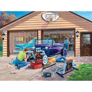Step into the scene of classic American nostalgia with the "Work in Progress" 300 Piece Jigsaw Puzzle by SunsOut, featuring the vibrant art of Ken Zylla. The puzzle art captures the essence of Americana charm through a beautiful, detailed garage vignette, crafted in the USA. The jigsaw is constructed from high-quality recycled cardboard, promising durable fun for endless hours. SunsOut ensures secure fitting with interlocking pieces for ease of assembly, providing a seamless and engaging experience. They also take pride in their eco-friendly approach— printing with soy-based inks and utilizing top-tier recycled board for a sustainable product. With every stunning SunsOut puzzle, you are supporting a woman-owned, American brand that values its customers and the environment, pushing for high standards in its offerings. The diversity of SunsOut's fully licensed art turns every puzzle into an interactive experience, celebrating creativity and channeling it onto a personal level. Perfect for unwinding or seeking a mindful escape, this jigsaw puzzle offers a fulfilling journey. Connect with your heritage, community, and the timeless beauty of everyday life through this thoughtfully designed puzzle—an authentic American brand that brings joy and satisfaction to your pastime.