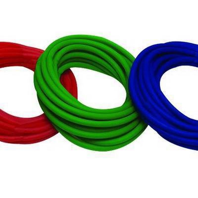 Latex free Sup-R Tubing is the ONLY brand exercise tubing you'll ever need because it performs like latex with the non-allergenic properties of latex-free. Tubing is available in 8 resistance levels. Levels range in order of strength from least to greatest resistance: tan, yellow, red, green, blue, black, silver, gold. Resistance exercise tubing has become a staple of many physical therapy and athletic training programs. It is an economic solution for upper and lower body exercise. It is lightweight, portable and durable. Effective when used alone, or with handles and anchors. Simply unroll desired length of exercise tubing and cut with scissors.