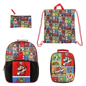 Your little Super Mario Brothers fan can head to school in style with this officially licensed Disney 5-piece backpack and lunchbox combo set! The 14" backpack has been custom-designed with big, colorful graphics of Mario, Luigi, and other