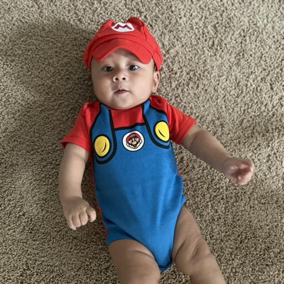 SUPER MARIO Nintendo Mario Luigi Baby Bodysuit and Hat Set Newborn to Infant - 1 of 4