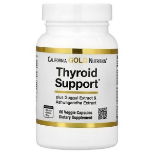 California Gold Nutrition Thyroid Support with Guggul, Ashwagandha, Bacopa and Green Tea Extracts, 60 Veggie Capsules