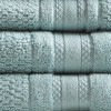 Our Madison Park Essentials Adrien Super Soft 6 Piece Cotton Towel Set introduces a simple and stylish update to your bathroom. This light weight performance cotton towel set features a zero twist construction making it incredibly soft and durable, while highly absorbent and quick drying at the same time. Bringing the best in health and wellness, these towels are also MADE IN GREEN by OEKO-TEX certified, meaning they do not include any harmful substances or chemicals while also using sustainable processes and socially responsible working conditions, for the best in quality comfort and wellness. In addition, each towel also features a silvadur antimicrobial treatment which provides built in freshness protection, inhibits growth of odor causing bacteria, and keeps linen newer, longer. Active for multiple washes, this treatment delivers long-lasting durable odor protection performance. Machine washable for easy care. Set includes: 2 bath (27x52), 2 hand (16x26), and 2 wash (12x12) towels.PRODUCT DETAILSSee below2 Bath Towels: 27"W x 52"L (2)2 Hand Towels: 16"W x 26"L (2)2 Wash Towels: 12"W x 12" L (2)MATERIAL100% cottonCARE INSTRUCTIONWash before first use. Machine wash cold on gentle cycle with like colors. Only use non-chlorine bleach when needed. Avoid contact with products containing benzoyl peroxide. Do not wash with sharp items that may pull the towel fibers, such as zippers or hooks. To maintain the quality and performance of your towels, avoid the use of fabric softeners and dry sheets. Tumble dry low, remove promptly. Do not iron. Before use, simply shake towels to restore fluff and pile.