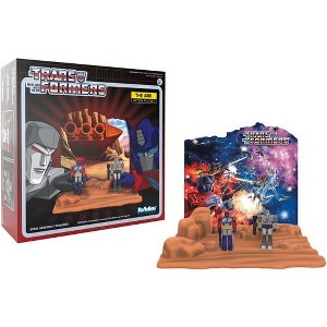 - Includes 3.75” scale metallic ReAction Figures of Optimus Prime and Megatron