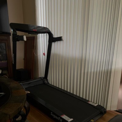 The sturdy motorized treadmill can support up to 242.5 lbs