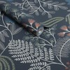 A full roll of this product is 20.5 inches wide and 396 inches long. A full roll can cover up to 56 square feet depending on the design match and pattern repeat. A sample of this product is 8 inches by 11 inches. The Richmond wallpaper design is a blend of navy soft sages with hints of burnt orange, creating a bold contemporary look. Featuring delicate, organic motifs with simplistic leaves, but on a large scale that blurs the lines of wallpaper or mural. The deep navy tone is bold and offers a more maximalist option to this design. Use this large scale design to create a homely and inviting environment in a living room, bedroom, or any space where a touch of understated elegance is desired. Offset match with 41.7 inch repeat.