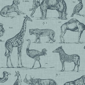 A full roll of this product is 20.5 inches wide and 396 inches long. A full roll can cover up to 56 square feet depending on the design match and pattern repeat. A sample of this product is 8 inches by 11 inches. This wallpaper is a fun yet sophisticated way to bring in the novelty trend of animals. Featuring a soft on-trend blue that calms the atmosphere of a chosen space, but still including the exciting talking point of the illustrated animals. Transform any living space with this unique design. Offset match with a 64 inch pattern repeat.
