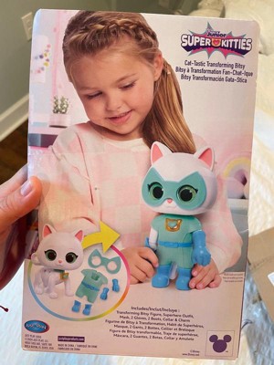 - Cute Kitty to Superhero: From whiskers to tail, the Disney Junior SuperKitties Cat-Tastic Transforming Bitsy is no ordinary feline, but a member of the SuperKitties.