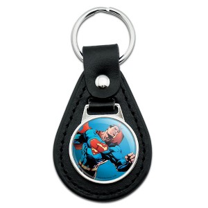 Superman Character Black Leather Keychain