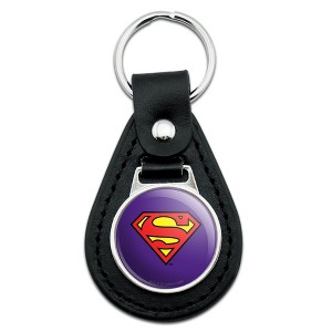 Superman Classic S Shield Logo Black Leather Keychain