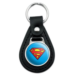 Superman Classic S Shield Logo Black Leather Keychain