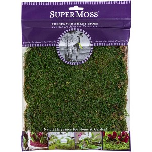 SuperMoss Fresh Green Preserved Sheet Moss. This moss is ideal for covering soil, dressing containers, plants and more. Cleaner and less dust than ordinary moss. Richer look, softer feel and a fresher appearance. Excellent for dressing orchids and ornamentals. Sustainable fill for gift baskets. Preserved and color enhanced for rich color and lasting beauty.