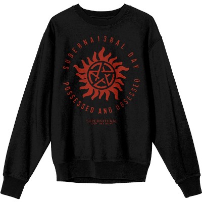 Supernatural Superna13ral Day Possessed And Obsessed Crew Neck Long Sleeve Black Unisex Adult Tee-Small