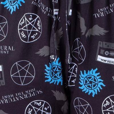 • ALLOVER PATTERN - Several symbols throughout this long-standing ghost-hunting series appear in these comfortable lounge pants! The pants showcase the original Supernatural logo used at the start of the series, a devil's trap, angel's wings, anti-possession, a pentagram, and Dean's classic mixtape.