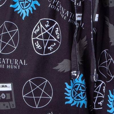 ALLOVER PATTERN - Several symbols throughout this long-standing ghost-hunting series appear in these comfortable lounge pants! The pants showcase the original Supernatural logo used at the start of the series, a devil's trap, angel's wings, anti-possession, a pentagram, and Dean's classic mixtape.