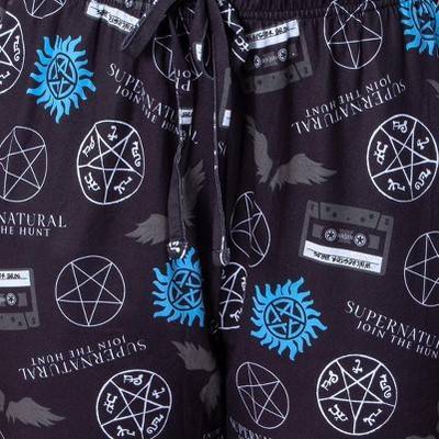 ALLOVER PATTERN - Several symbols throughout this long-standing ghost-hunting series appear in these comfortable lounge pants! The pants showcase the original Supernatural logo used at the start of the series, a devil's trap, angel's wings, anti-possession, a pentagram, and Dean's classic mixtape.