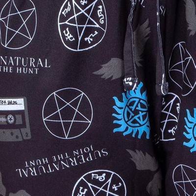 ALLOVER PATTERN - Several symbols throughout this long-standing ghost-hunting series appear in these comfortable lounge pants! The pants showcase the original Supernatural logo used at the start of the series, a devil's trap, angel's wings, anti-possession, a pentagram, and Dean's classic mixtape.