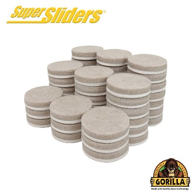 Protect your floors and move furniture easily with the Super Sliders + Gorilla Glue 1-in. Brown Round Felt Pads 48-Pack. Whether you're setting up the dining room for hosting, gathering at the kitchen table for a meal, rearranging the living room, or cleaning underneath chairs and tables, these durable felt pads help prevent scratches, dents, and scuffs on hardwood, tile, and laminate surfaces.