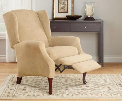 [This review was collected as part of a promotion.] The SureFit Ultimate Stretch Suede Wingback Chair Slipcover is a game-changer for anyone looking to refresh their living space effortlessly. Crafted with premium-quality stretch suede fabric, this two-piece slipcover provides a snug, custom-like fit for your recliner chair. The cement beige color adds a touch of sophistication to any room, while the wingback design adds a classic flair. Its easy-to-install design ensures a seamless transformation of your recliner, giving it a brand-new look in minutes. Whether you want to protect your chair from stains and spills or simply update its appearance, the SureFit Ultimate Stretch Suede Slipcover is a must-have for every home.