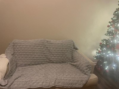 [This review was collected as part of a promotion.] I received this item for free from Influenster in exchange for my honest review. I have 3 dogs and desperately needed something to cover my sofa. This sofa cover is great and does not move much despite the dogs jumping on and off constantly. It is very soft and my dogs really seem to like it!