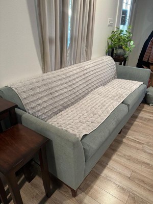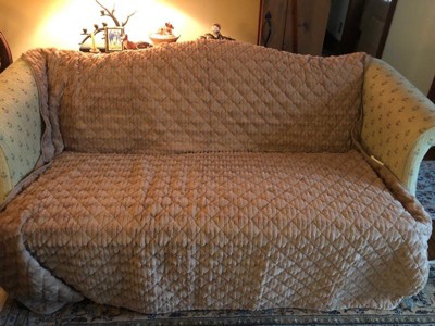 [This review was collected as part of a promotion.] I got this Alex quilted fur furniture protector in the color tan and love how it feels. It is so soft and it was really easy to put on the couch. It tucked in nicely to the couch and made it look so much better!