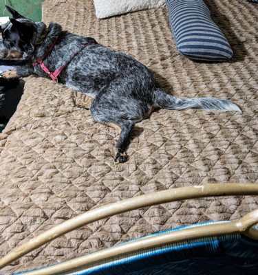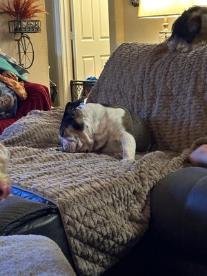 [This review was collected as part of a promotion.] This Alex Quilted Fur Furniture protector is actually much better than I expected. I expected something pretty thick and waterproof, with minimal amounts of fur. I basically figured it would be more like a fleece material than anything else. I was wrong!! When the furniture protector arrived, I was a little concerned because the plastic packaging it was in, had been ripped open halfway on top. And there was a hole in the front of the packaging. I was a bit worried about it being damaged or soiled in some way during shipping. (I'm much more paranoid about these things since covid🙄) I briefly considered not opening it and using it at all, but then I felt how incredible soft it was. It looked like they made it using the softest of real fur. I thought the "fur" description in the name meant it protected your furniture from per fur. It is actually describing the material of the cover. I don't know how well it does regarding animal hair because I'm sure it will attract just as much hair as anything else. But it is quite thick without being too heavy or bulky. It protects your furniture from spills and dirt and anything your pets, or even kids, track in with them. The tan color of this one is lovely and will match most deco. It is well made and I will be looking to purchase more of these soon! I put this cover over my bed sheets to protect them and my mattress from doggo messes. They are very spoiled and are used to sleeping and lounging on my bed. But I constantly have to scrub my mattress or change all my bedding because one of them makes a mess with a chew, and because there is hair all over my bedding. I also have a 14 year old dachshund mix that has been having accidents(urine). With this cover, throughout the day I cover my entire queen sized bed with it easily. At night, I told it down for my doggos to sleep on the bottom half of the bed. So I'm not laying in hair at all. Last whenever an accident or mess occurs on this cover, it is so easy to clean it up. I've not washed the whole thing yet, so not sure how it holds up to that. But I have spot cleaned it and it does great. My fur babies love it. To be honest, I contemplated using it for myself!
