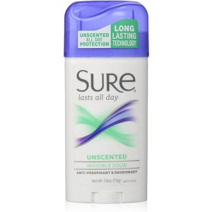 Sure Invisible Solid Unscented Deodorant 2.6 oz for Effective Odor and Sweat Protection, Gentle Fragrance-Free Formula Ideal for Sensitive Skin