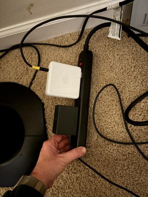 My favorite power strip under my desk. I've got this sleek black power strip tucked under my desk in a wooden-floored space, and it's working great. It organizes cords from my phone and other gadgets nicely and has enough outlets for everything I need. I like that it's compact for tight spaces like under desks. For anyone needing a reliable power strip that doesn't take up much room.