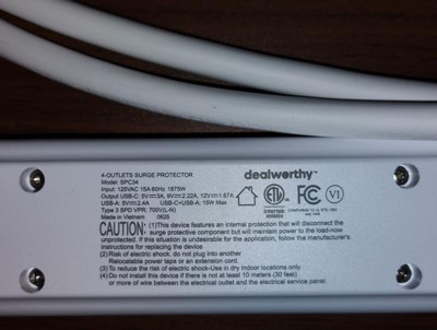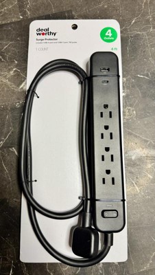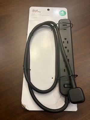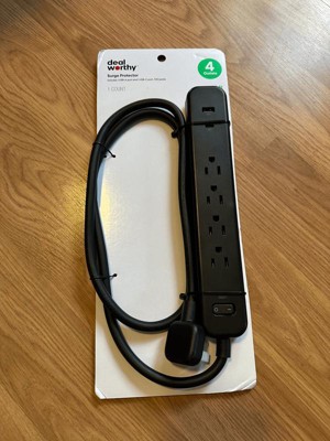 Deal worthy 4 foot Surge protector with 4 outlets & 1 USB port & 1 C port is a great surge protector. In pure / bright white . I definitely love this Surge protector #1 it's equipped with a 4 foot cord ( gives you a little wiggle room from where you can plug it in & place it) & not only can you plug 4 items in but you can also charge your phones at the same time. You can secure this protector to the wall. & This protector Has a light indicator when it's turned on. You can also turn off this surge protector when items are not in use Deal worthy may be sold at a lower price but works just as great as the bigger named surge protectors. Deal worthy will definitely protect your products when plugged in. Great quality. Trustworthy. I highly recommend deal worthy.