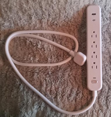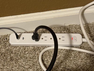 This power strip/surge protector is a great size with four outlets, a USB-A port and a USB-C port. The four-foot cord is sturdy and works well in smaller spaces. The white color blends easily with lighter color walls.