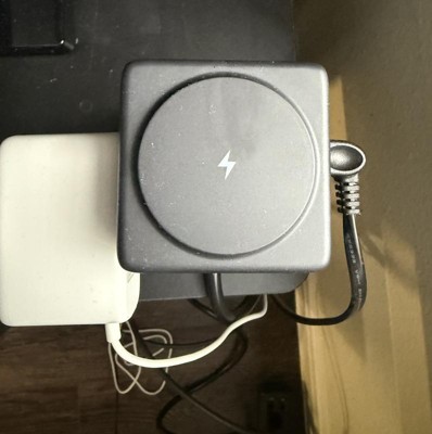 This surge protectors with a built in charging pad is a nice solution for anyone needing to centralize and organize their charging cables. It’s designed as a vertical tower design which is different, but space-efficient, which is an advantage for crowded spaces like a desktop. It has six standard outlets, two USB-A ports, and one USB-C port, making it very versatile. It can easily handle everything from monitors and lamps to smartwatches and tablets, all at once. The 1080 Joules surge protection rating provides guards against unexpected power spikes. In terms of functionality, the cube form factor is practical, ensuring that even large, bulky power adapters can be plugged in without blocking adjacent outlets, which can be really frustrating with normal power strips. And the plug sits flush against the outlet with the power cord connected to the side, rather than sticking straight out (see photo). This seems to be designed as an accessible desktop accessory rather than hidden under or behind a desk, which is where the integrated wireless charging pad comes into play. The convenience of simply setting your phone on top for a quick charge is a great feature, and it also reduces cord clutter. However, the design choice for the top-mounted wireless charging pad is a drawback. As seen in the photos, the phone rests flat on the top surface of the tower. Because this device is relatively light and designed to have devices plugged into its vertical sides, the combination of it being vertically designed (like a tower) with the top-mounted, flat charging surface feels precarious. I can easily foresee someone inadvertently knocking their phone off the charging pad when reaching to plug or unplug a device from one of the side outlets or USB ports. There is no lip, ridge, or magnetic element to secure the phone, meaning a slight bump could send your expensive device tumbling to the floor. Ultimately, this surge protector is well designed and versatile, and if you plan to use the wireless charging feature, do so with caution. For me, the risk of damage to a phone due to the unstable design of the charging pad prevents me from using that feature as often as I’d like, which undermines one of its key selling points.