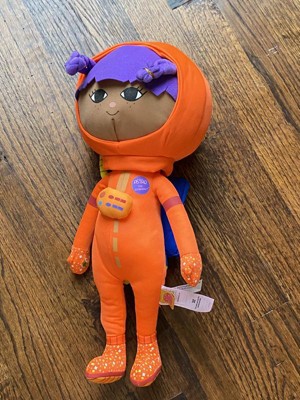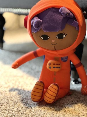 [This review was collected as part of a promotion.] This is a cute little doll to get for your space explorer! It is plush and soft on the outside so it can with stand spaceship take offs and landings. The bright orange color is fun and makes her always easy to find.