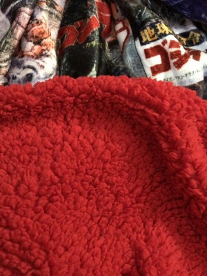 Big blanket, beautiful print and so soft front and back! Large enough to cover almost a queen size bed for reference in size. Shipped quickly and in perfect condition. I get worried sometimes with printed blankets like this being just super thin scratchy feeling or having a real funky chemical smell but this didn't have any of that. Very happy with this product, high recommend for any Godzilla fan.