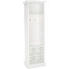 Introducing the Surrey 6 Shelf 2 Hook Bottom Storage Hall Tree in a stunning antique white finish. Made from durable wood, this hall tree combines functionality with elegance to complement any entryway. With six spacious shelves, it offers ample space for shoes, bags, and accessories. The two sturdy hooks are perfect for hanging coats, hats, or scarves, ensuring everything you need is always within reach. Its timeless design adds a touch of sophistication to your home while keeping everything tidy and organized. Transform your hallway into an inviting and efficient space with the Surrey Storage Hall Tree and enjoy the blend of style and practicality it brings to your living area.