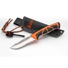 The S.O.L. Stoke Survival Knife can handle all your camping, hunting, and hiking adventures. The 3.8-inch knife is made from high-grade 420 stainless steel with a full tang to give this blade the ultimate strength and durability while outdoors. It has a plain edge that is sharp enough for cutting and slicing. Get more out of your survival knife with the included 36 inches of tinder cord and flint fire starter. You will have everything you need for chopping some branches and starting your campfire. The nylon/TPR handle is easy to grip and comfortable to hold. When not in use, the tough riveted holster will cover your blade and protect it while traveling.