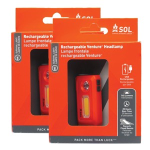 - Includes two SOL Rechargeable Venture Headlamps