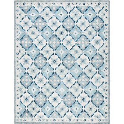 Introducing our elegant 9' x 12' hand hooked area rug, where the beauty of blue blends effortlessly with a spectrum of colors. Crafted in India, this bohemian-inspired wool and cotton masterpiece brings warmth with its soft texture. The large rectangular shape and half-inch height add a touch of sophistication to any room. Experience the art of handcrafted weaving that showcases remarkable craftsmanship, making this rug a genuine treasure. Whether placed in your living room or bedroom, its vibrant hues and exquisite design effortlessly enhance your decor. Embrace the charm and artistry of this unique piece and transform your space into a cozy haven.