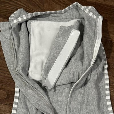 These swaddles are soft to touch and made out of cotton. My baby loves how it keeps her swaddle in tightly. It has an inner part to swaddle the hands and a double zipper for easy nighttime diaper changing. It hugs her nicely to help her sleep but it’s not too tight.