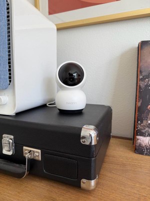 [This review was collected as part of a promotion.] This little camera is fantastic! Easy to use instructions both in English and Spanish. Connects to WiFi. 2k resolution with clear picture. It comes with all the hardware to mount it. I prefer just to use on a table or shelf. I am using this camera to track and keep tabs on a senior pet when I am not home , so the pan and tilt feature is perfect. Can use to talk to people in the home through the camera. Night vision is a clear view. Takes a SD card for recording. The app is easy to use and pairing is a breeze. The app gives prompt notifications. It’s an adorable little camera and reminds me of a tiny robot lol