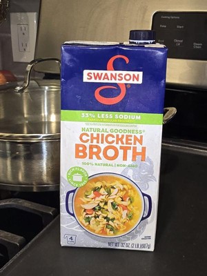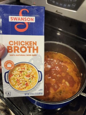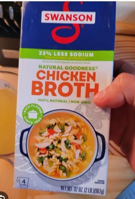 Swanson Chicken Broth unsalted 100% natural /non gmo Net Wt 32 OZ (2 lb ) (907g). This Swanson Chicken Broth is my goto when making chicken soup or just sopitas, the quality ingredients just gives you that rich flavor like no other brand . This is also good when you are having an operation or they have you on just liquids this is such a good source of protein, this is good for so many recipes. WHAT IS BROTH Broth is a rich, seasoned liquid that starts with meat and vegetables