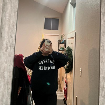 Seasonal Humor Statement: Embrace chilly days with this “Sweater Weather” sweatshirt featuring bold white text on navy; perfect for autumn vibes, fall lounging, or layering in cold weather with a side of sarcasm and cozy comfort